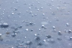 Out of nowhere, hail the size of golf balls is slamming down. People are sprinting to their cars, slipping and sliding across the parking lot. Someone is throwing a